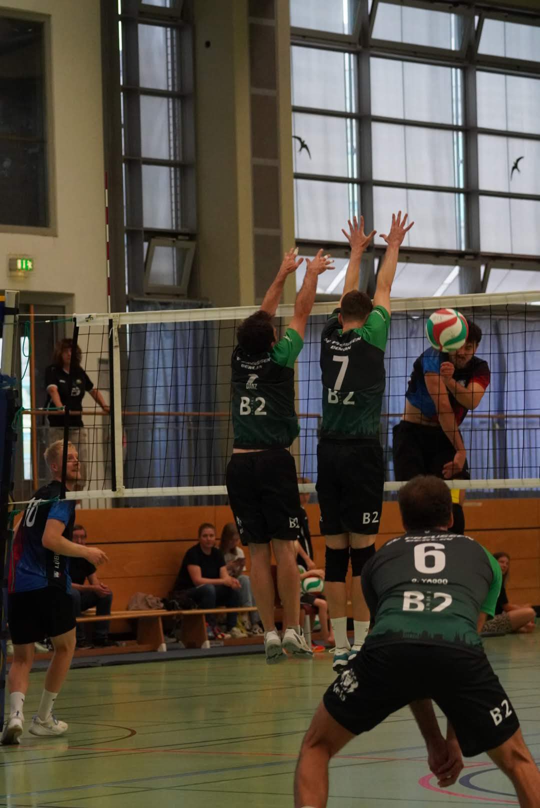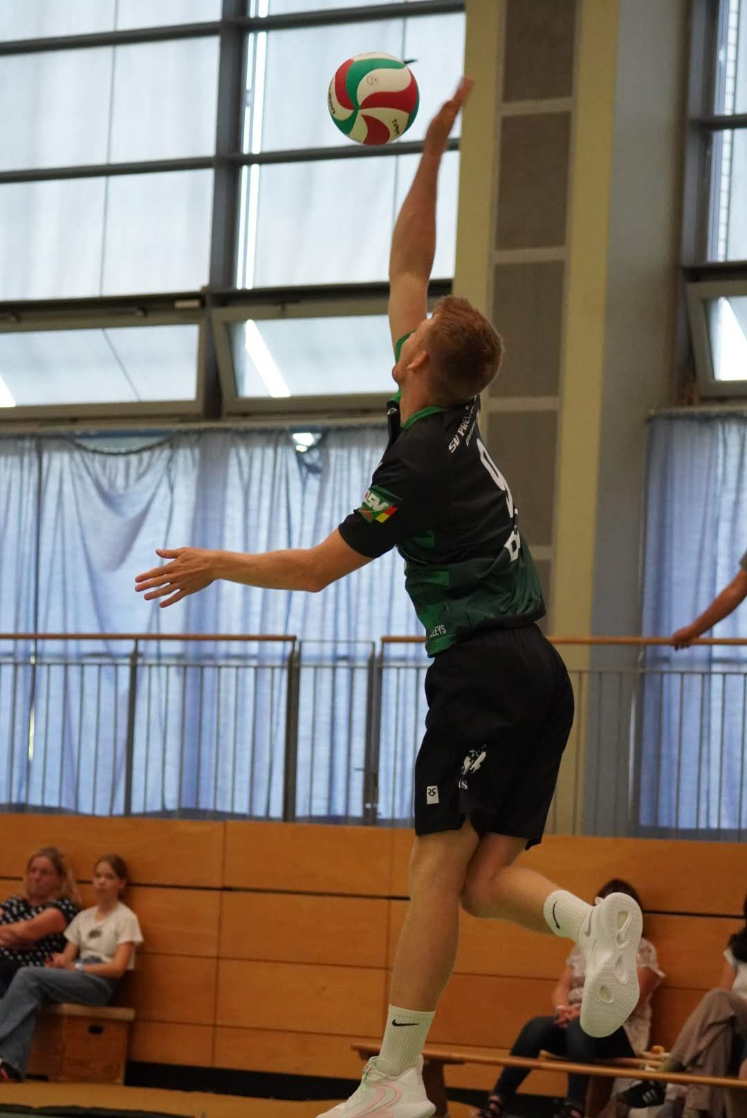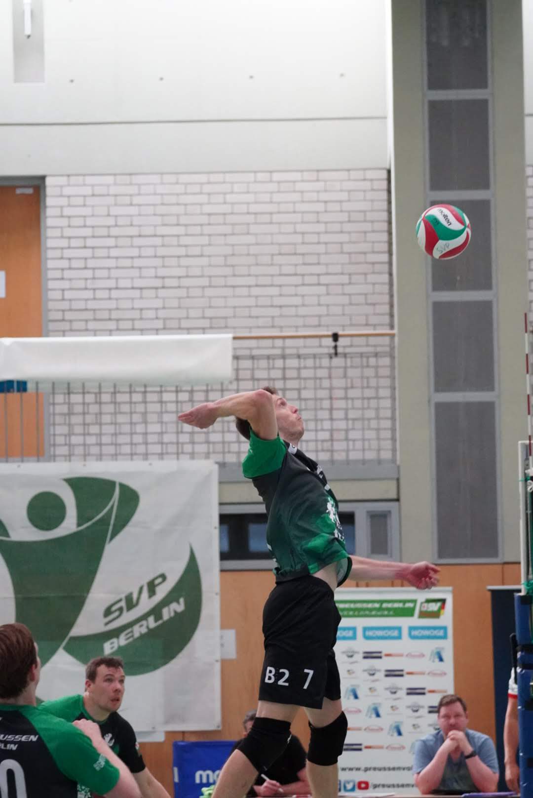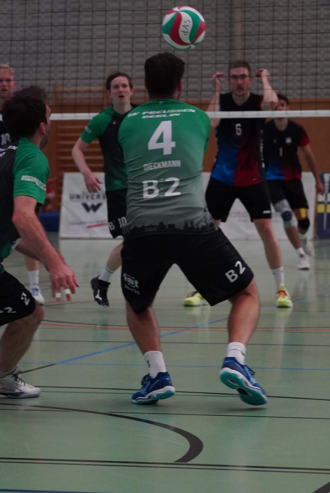 SV Preußen startete mit Kapitän Peter, Yanik, Otto, Dima, Omar und Robert² in den ersten Satz. Dieser gestaltete sich, wie zu erwarten, spannend und bis zum Stand von 10:10 konnte sich keines der Teams absetzen. Doch dann konnte der an diesem Tag stark aufschlagende Peter ein kleines Drei-Punkte-Polster für uns erarbeiten. Jedoch kämpfte sich Lübeck mit zwei kleinen Serien wieder heran und konnte zum 22:22 ausgleichen. Am Ende behielten wir trotz der warmen Halle einen kühlen Kopf und machten die entscheidenden drei Punkte zum 25:22.