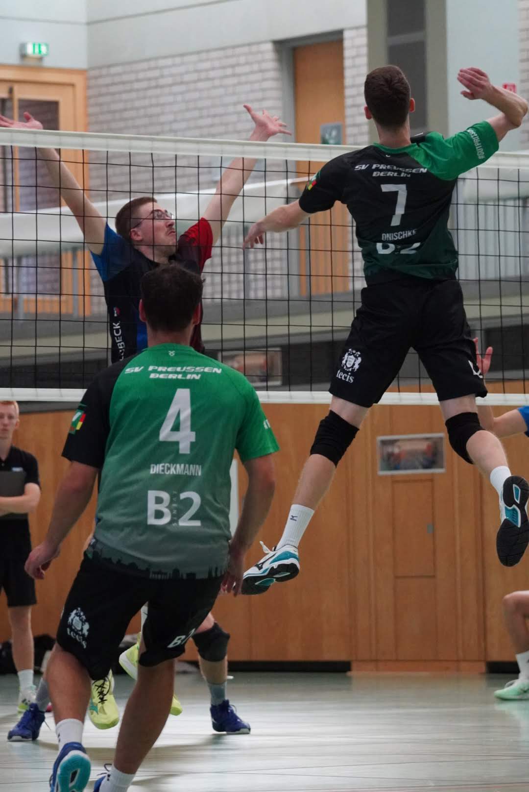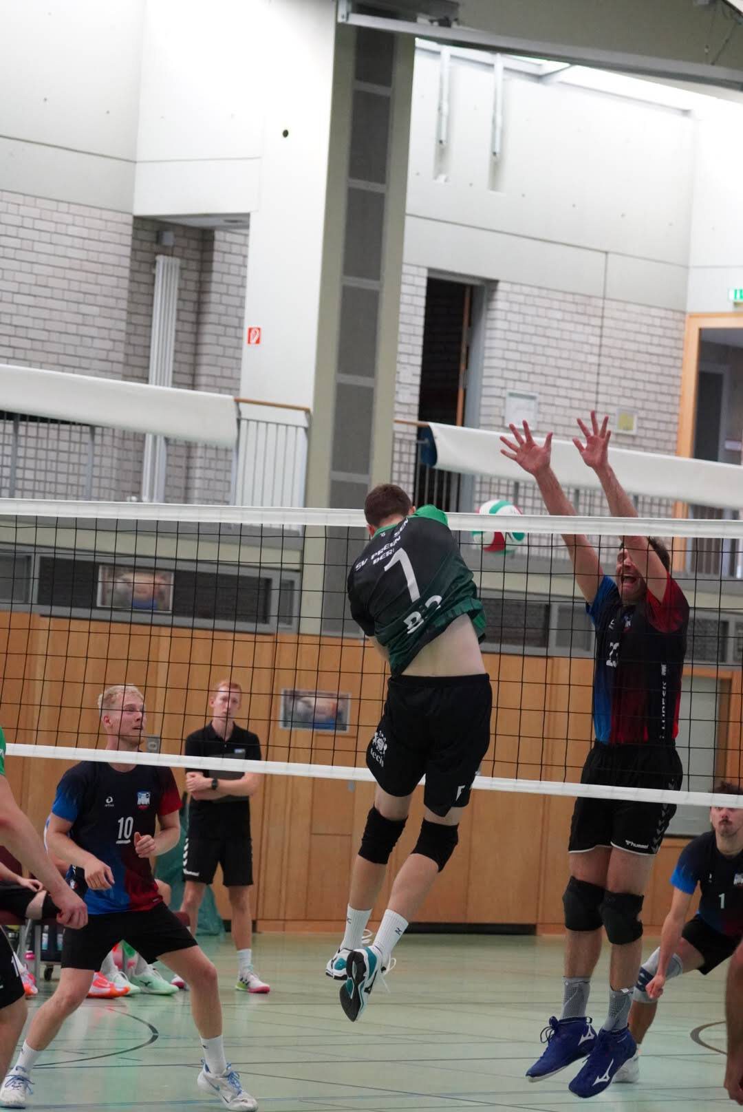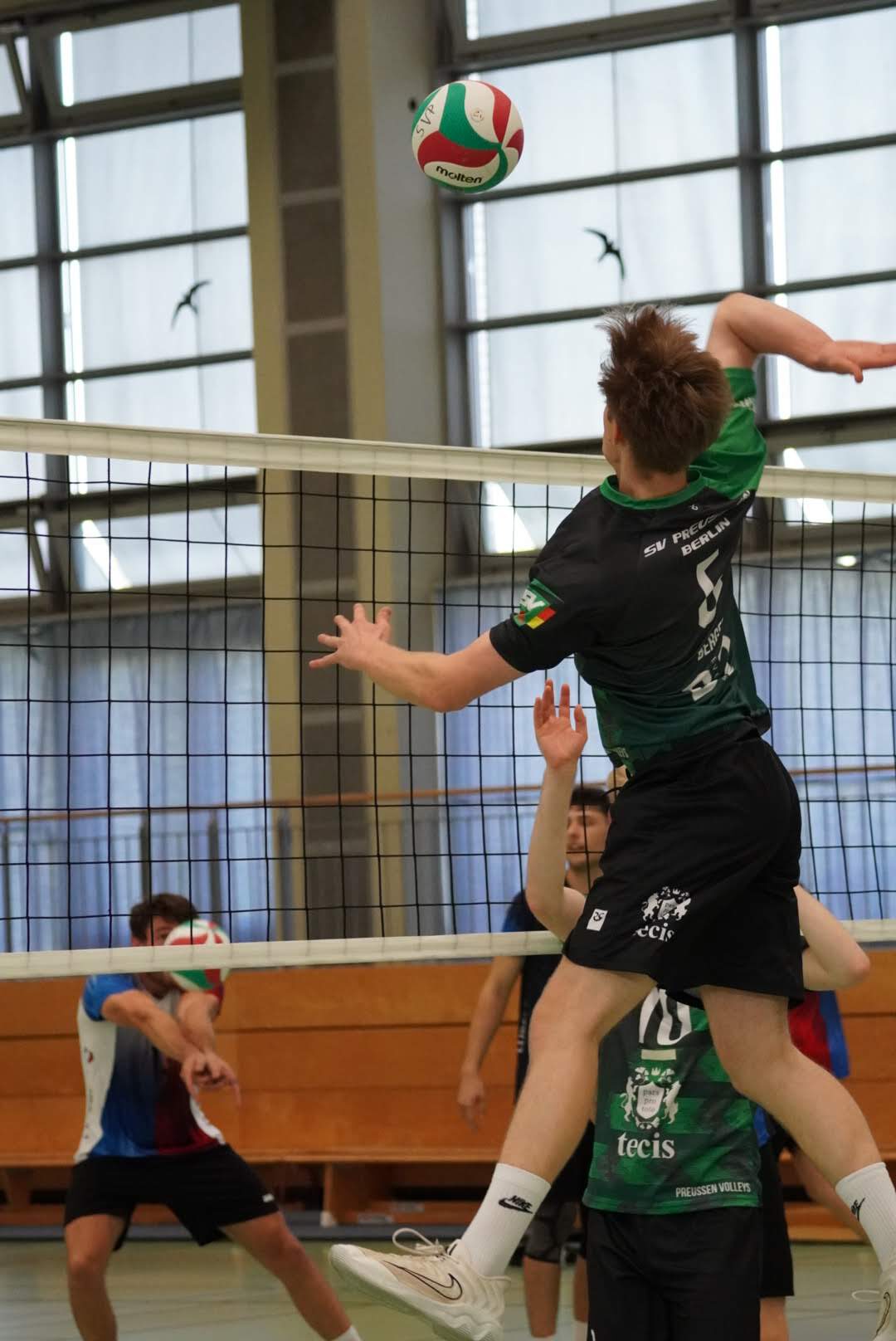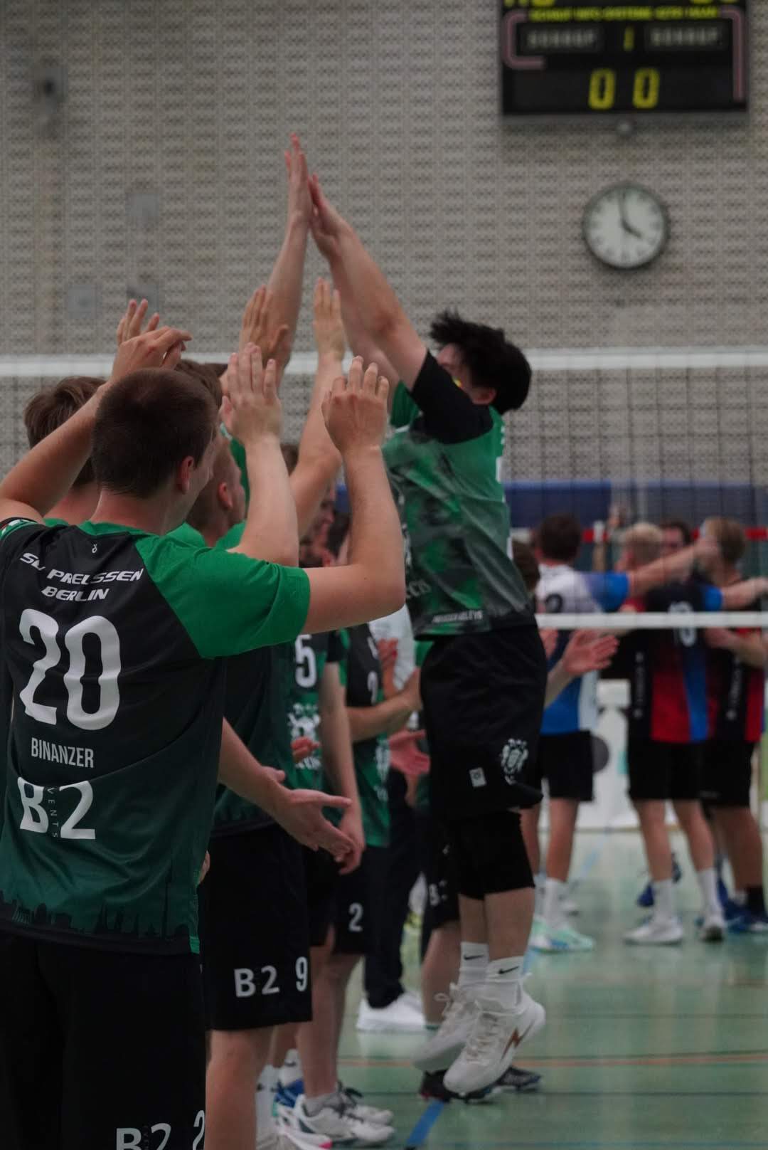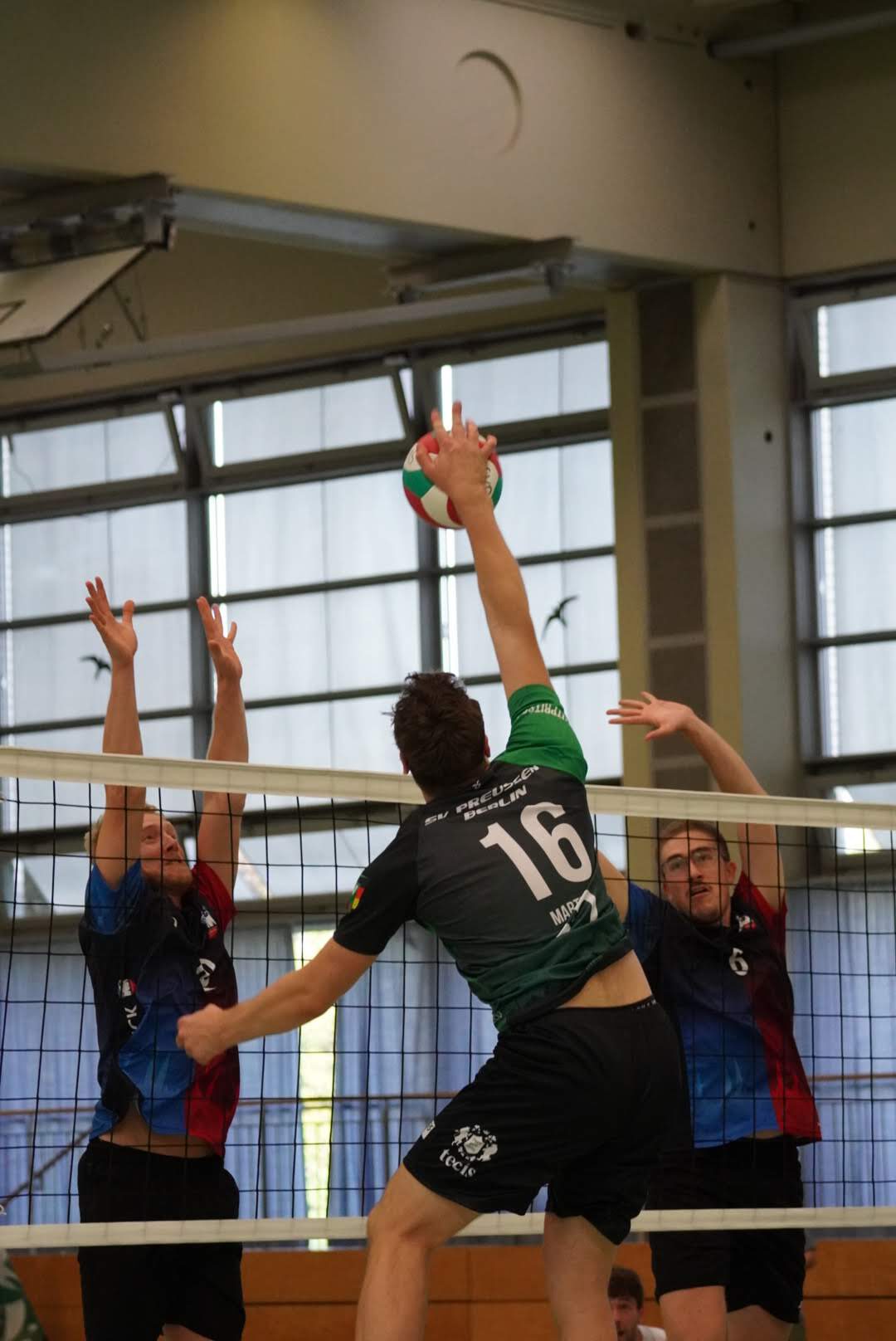 SV Preußen startete mit Kapitän Peter, Yanik, Otto, Dima, Omar und Robert² in den ersten Satz. Dieser gestaltete sich, wie zu erwarten, spannend und bis zum Stand von 10:10 konnte sich keines der Teams absetzen. Doch dann konnte der an diesem Tag stark aufschlagende Peter ein kleines Drei-Punkte-Polster für uns erarbeiten. Jedoch kämpfte sich Lübeck mit zwei kleinen Serien wieder heran und konnte zum 22:22 ausgleichen. Am Ende behielten wir trotz der warmen Halle einen kühlen Kopf und machten die entscheidenden drei Punkte zum 25:22.