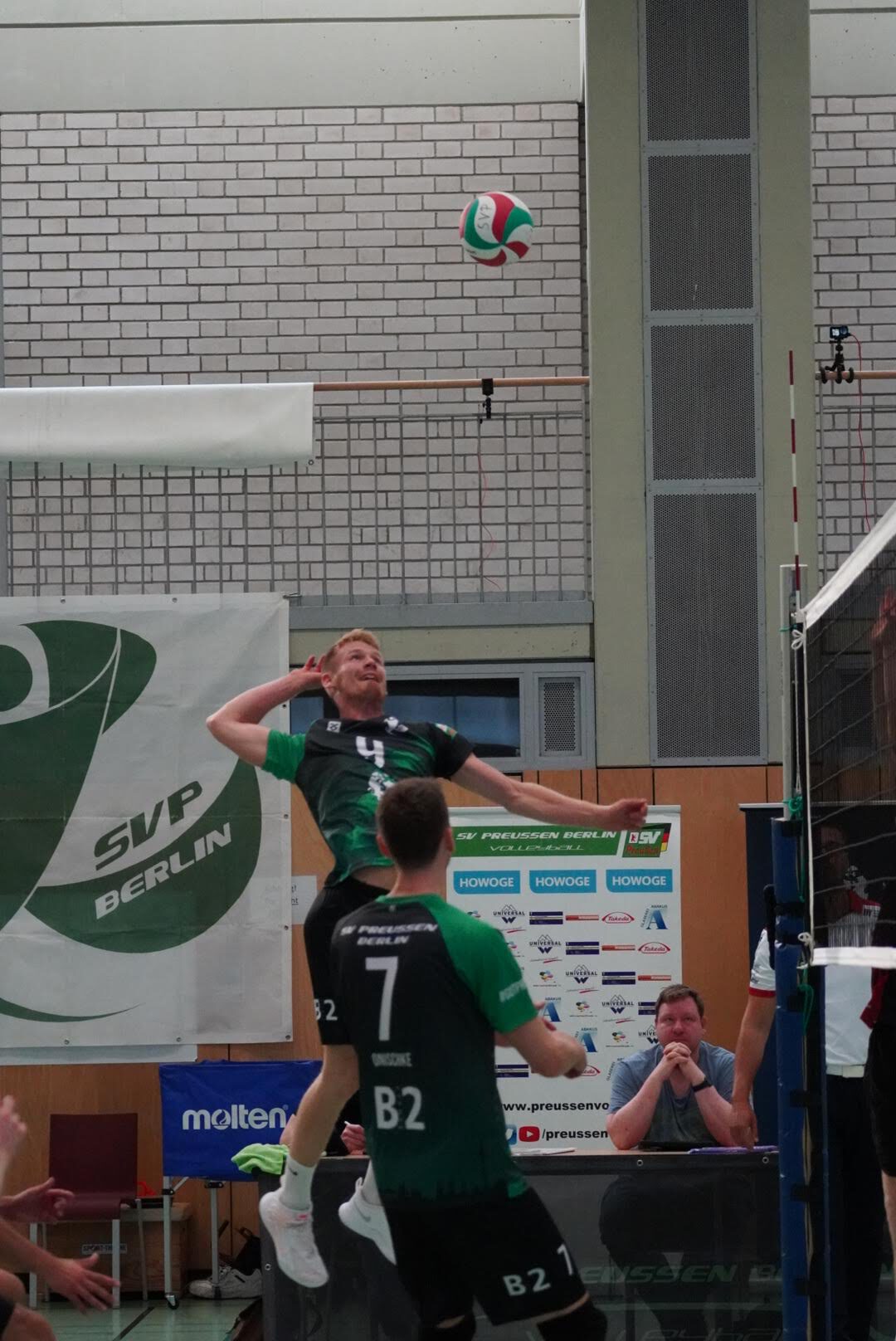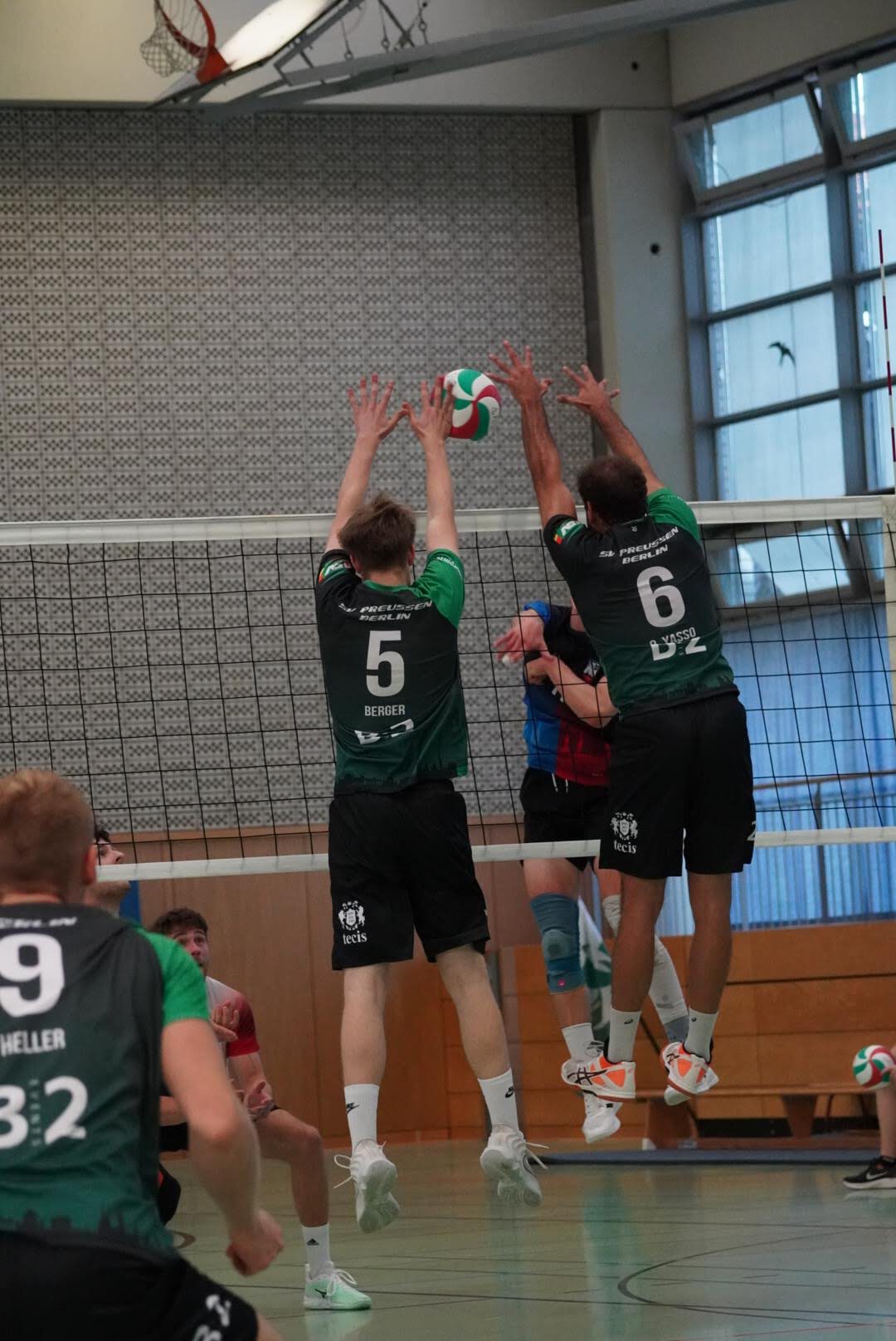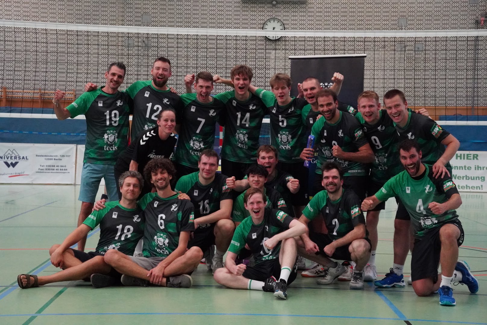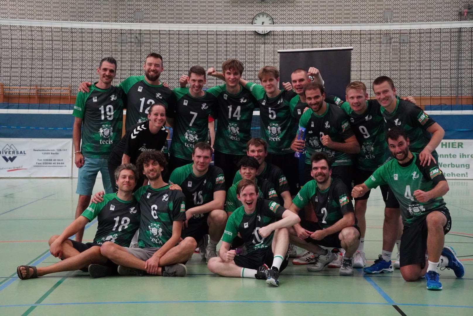 SV Preußen startete mit Kapitän Peter, Yanik, Otto, Dima, Omar und Robert² in den ersten Satz. Dieser gestaltete sich, wie zu erwarten, spannend und bis zum Stand von 10:10 konnte sich keines der Teams absetzen. Doch dann konnte der an diesem Tag stark aufschlagende Peter ein kleines Drei-Punkte-Polster für uns erarbeiten. Jedoch kämpfte sich Lübeck mit zwei kleinen Serien wieder heran und konnte zum 22:22 ausgleichen. Am Ende behielten wir trotz der warmen Halle einen kühlen Kopf und machten die entscheidenden drei Punkte zum 25:22.
