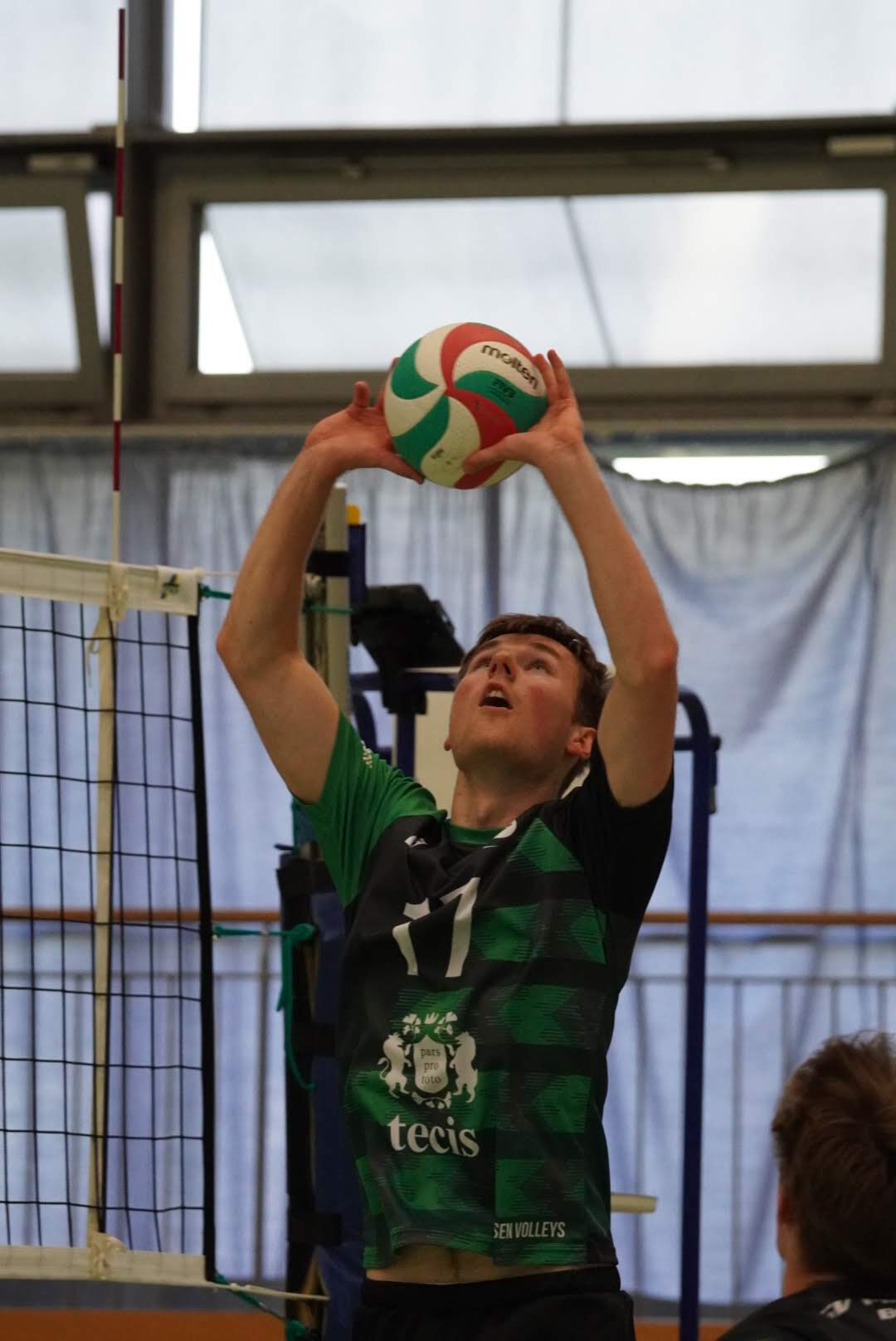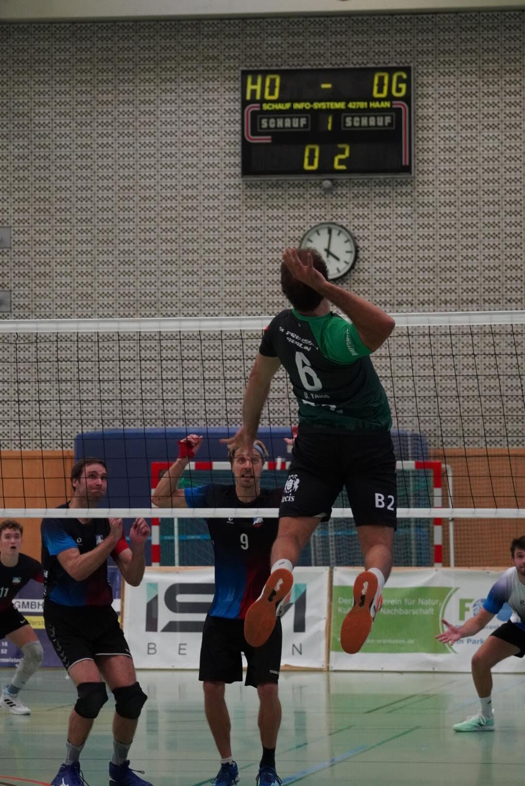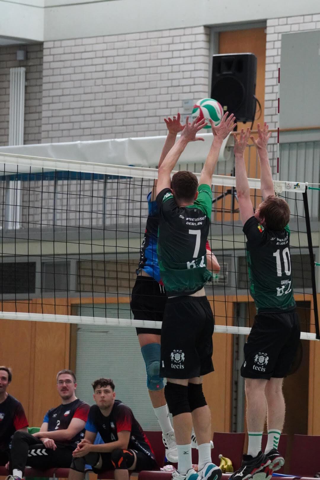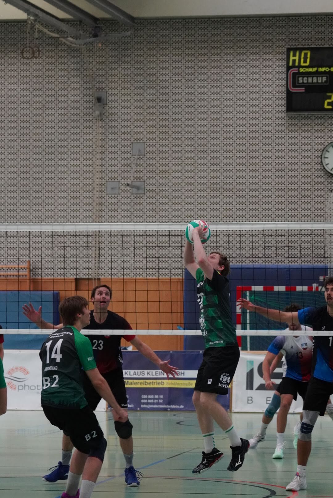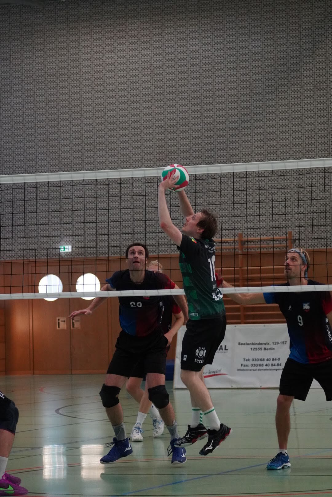 SV Preußen startete mit Kapitän Peter, Yanik, Otto, Dima, Omar und Robert² in den ersten Satz. Dieser gestaltete sich, wie zu erwarten, spannend und bis zum Stand von 10:10 konnte sich keines der Teams absetzen. Doch dann konnte der an diesem Tag stark aufschlagende Peter ein kleines Drei-Punkte-Polster für uns erarbeiten. Jedoch kämpfte sich Lübeck mit zwei kleinen Serien wieder heran und konnte zum 22:22 ausgleichen. Am Ende behielten wir trotz der warmen Halle einen kühlen Kopf und machten die entscheidenden drei Punkte zum 25:22.