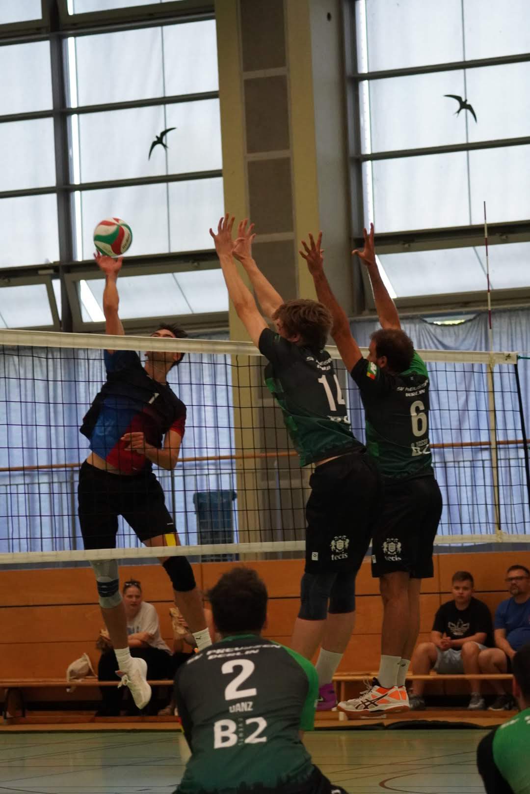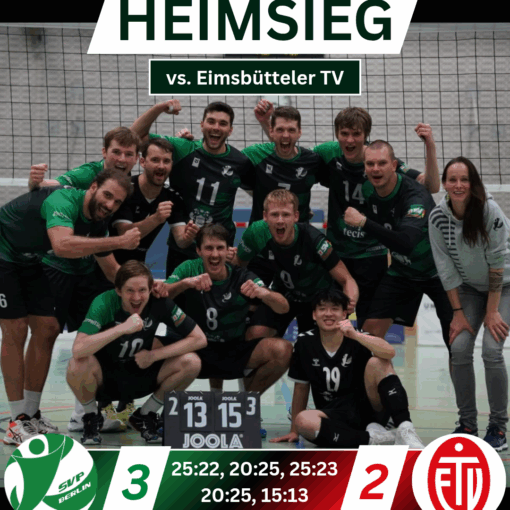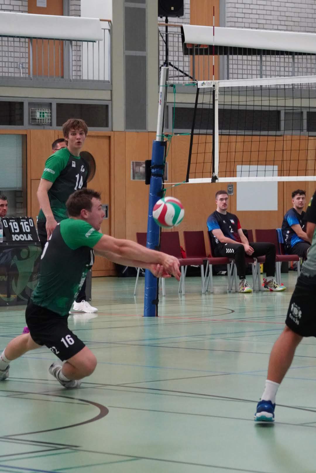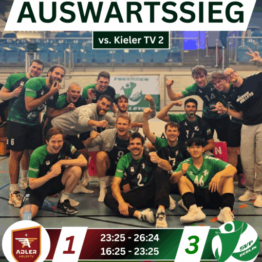 Aufgrund der ersten beiden Satzverläufe konnte man nun erwarten, dass auch der dritte Satz Spannung verspricht. Trainerin Andrea ließ nun Felix und Adrian für Otto und Dima starten. Das Versprechen sollte nicht gebrochen werden, denn bis zum Stand von 18:18 blieb es immer eng und beide Teams bewiesen Stabilität in Ihren Sideouts. Doch auch im dritten Satz in Folge konnten wir am Ende unsere Stärken aufs Parkett bringen und holten uns die ersten drei Punkte der Saison verdient mit einem sieben zu eins Run (25:19).