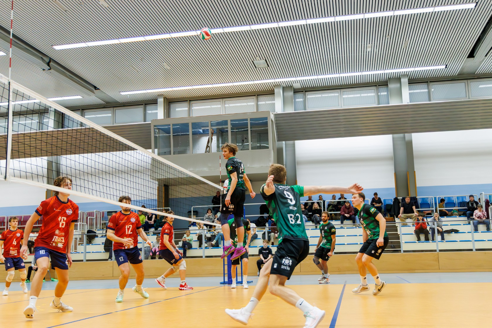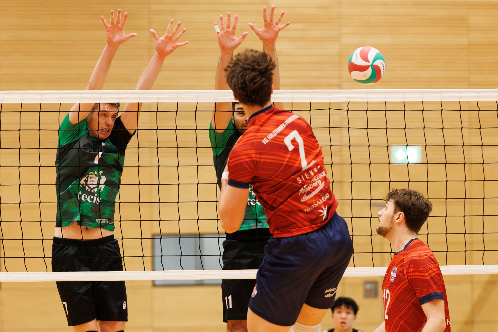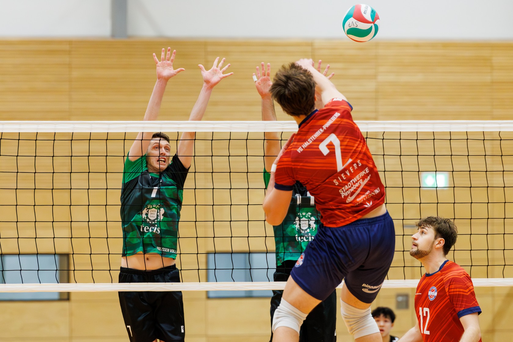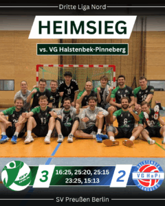 Am Samstag empfingen wir die VG Halstenbek-Pinneberg in der Anton-Saefkow-Halle. Das Spiel entwickelte sich zu einem echten Volleyball-Marathon über fünf Sätze, den wir am Ende mit 3:2 (16:25, 25:20, 25:15, 23:25, 15:13) für uns entscheiden konnten. Die rund zwei Stunden Spielzeit boten den Zuschauern intensive Ballwechsel, starke Aufschlagserien und ein ständiges Auf und Ab beider Teams.