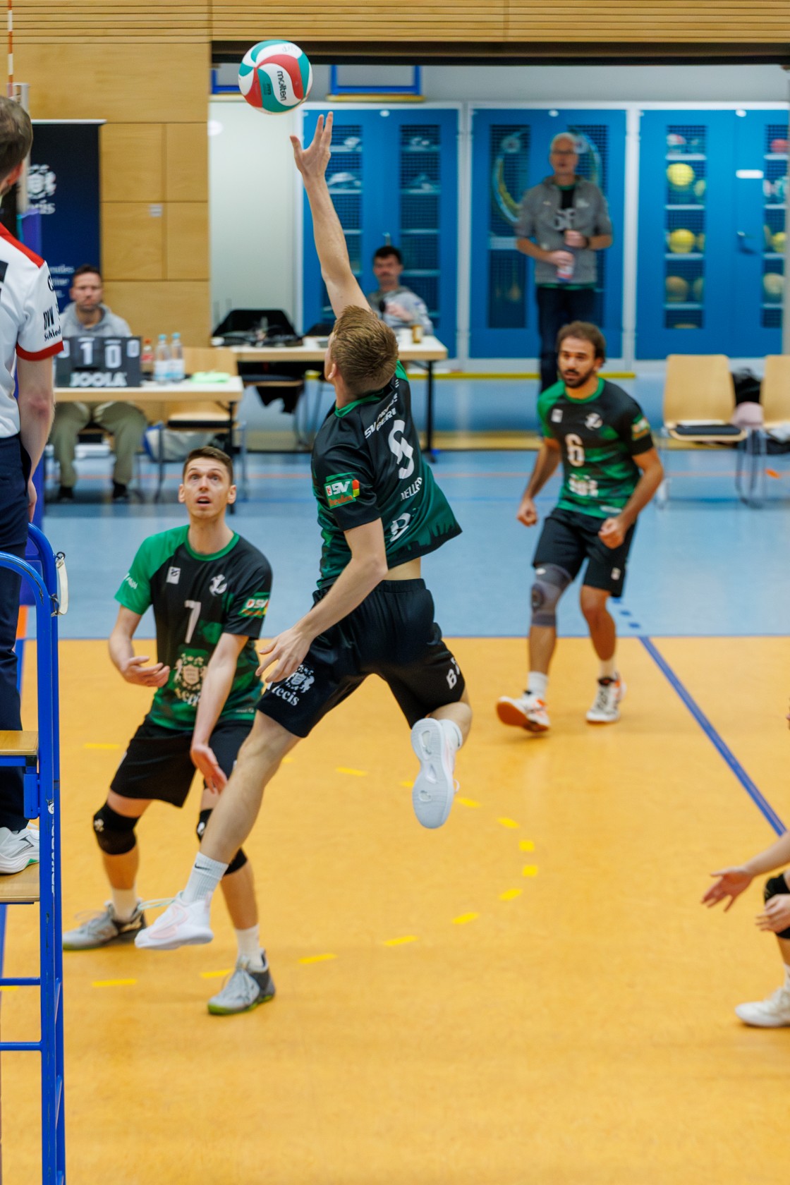 Der vierte Satz wurde zum offenen Schlagabtausch. Beide Mannschaften waren nun voll im Rhythmus, die Ballwechsel wurden länger und härter umkämpft. Um den drohenden Tiebreak zu vermeiden, wechselten wir noch einmal durch. Doch Pinneberg blieb dran und legte zum Satzende eine starke Serie hin – angeführt von ihrem späteren MVP Nils Sievers, der mit beeindruckenden Aufschlägen und zwei Assen zum Satzende den Unterschied machte. Mit 23:25 mussten wir den Ausgleich hinnehmen.
